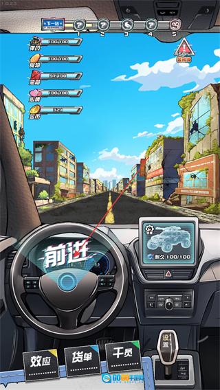 4、通过点击方向盘操控车辆在道路上前行,过程中会触发各类事件,需确保安全地将物资送达目的地。