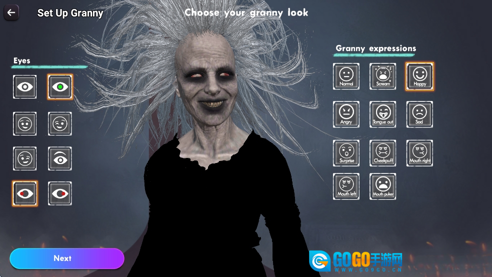 先挑选奶奶的眼睛及面部表情,之后点击【Next】。
