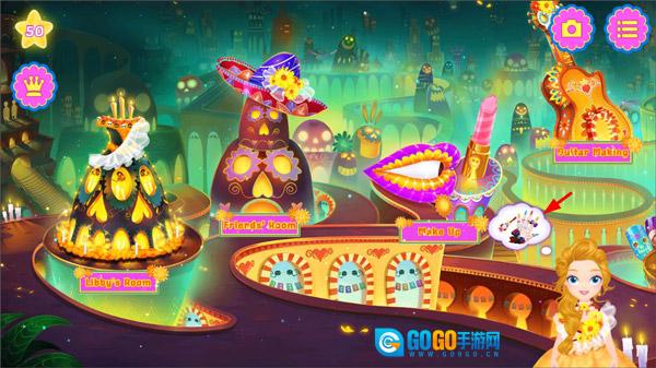 1、打开莉比小公主寻梦音乐会游戏,进入游戏主页,玩家可以看到游戏有不同的板块,包括莉比的房间(libby's room)、朋友的房间(friend's room)、化妆间(Make up)、吉他房(guitar making)、美甲店(nail salon)等,玩家点击查看右下角莉比的需求。