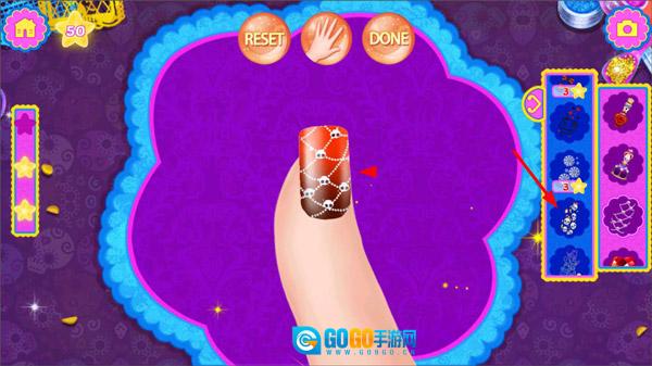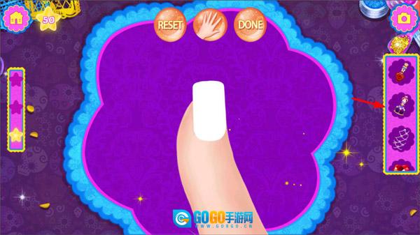 4、涂好指甲油后,玩家可以选择工具栏中的装饰品,给指甲添加装饰。