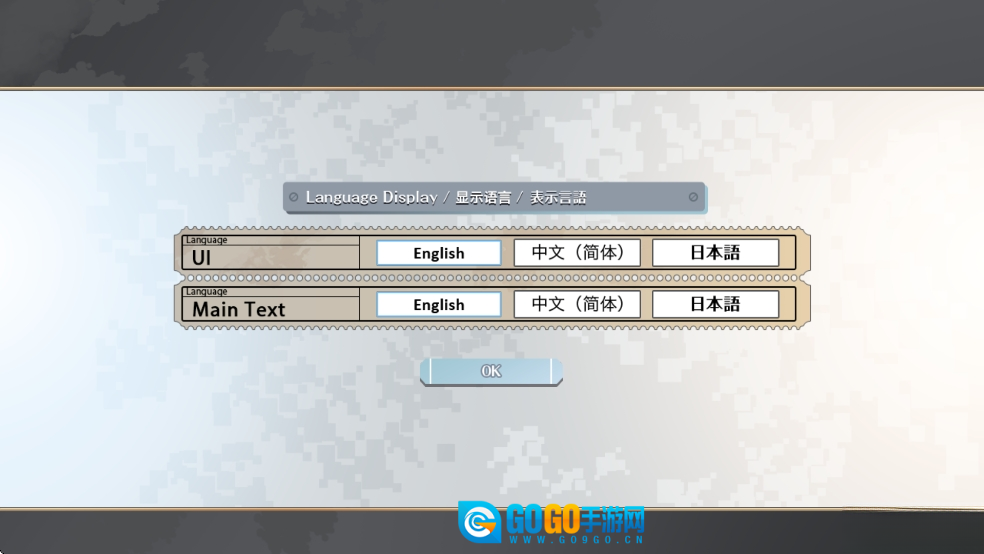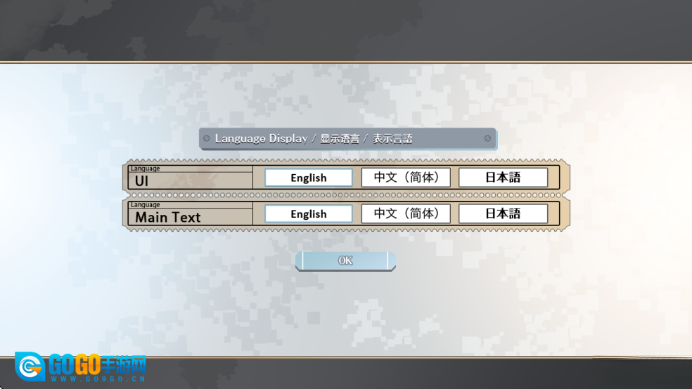 进入游戏时会出现语言选择界面,务必全部勾选简体中文。