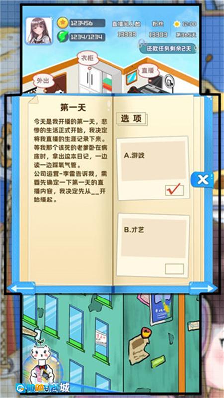 《主播日记》围绕主播直播展开,为玩家呈现了多样的直播类型与运营策略,玩家可自由挑选。丰富的故事情节搭配多条故事结局,吸引玩家反复挑战多个周目,在选择不同直播方向与策略的过程中,收获丰富多彩的游戏体验。