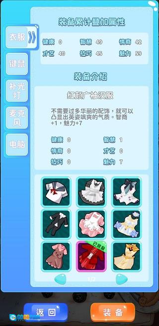 7、经纪公司——设有关于智商的学习项目,参与学习后能够提升智商经验与情商经验。同时,致力于消除黑粉,力求黑粉数量越少越好。此外,还可招聘经纪人,优秀的经纪人不仅能降低平台抽成,而且在你进行直播与学习时,会产生加成效果(经纪人的属性可通过使用钻石来刷新)。
