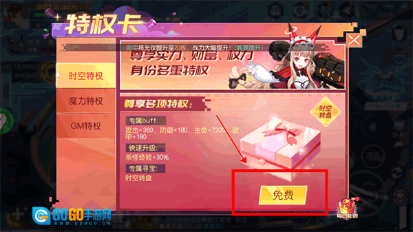 4、轻点游戏上方的特权卡,就能免费领取VIP时空特权啦!别再犹豫,赶紧来领取吧!