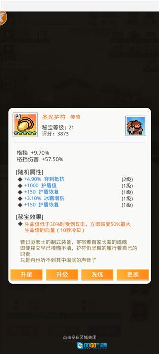 7、关于秘宝洗练,建议优先洗出增加护盾的属性,其次是血量,再接着是攻击。需要注意的是,可能有些人在洗练过程中会忘记这个顺序。