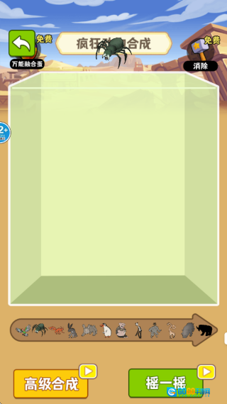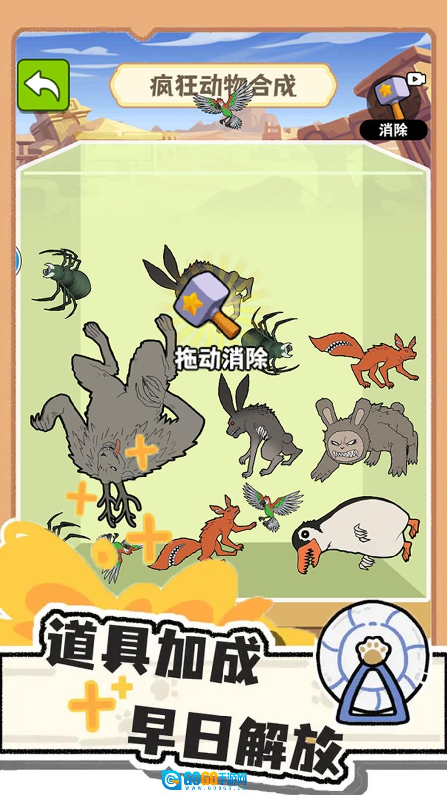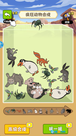 3. 小编点开了疯狂动物合成关卡,轻点屏幕,屏幕上方的动物便会下落,相同的动物能够合并实现进化。