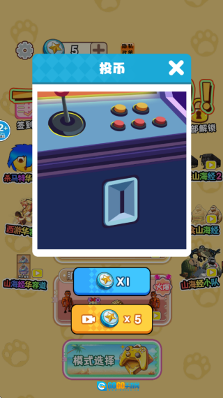 2. 如图所示,选定模式后,需投入游戏币方可开始玩耍,游戏币会随时间逐渐恢复。