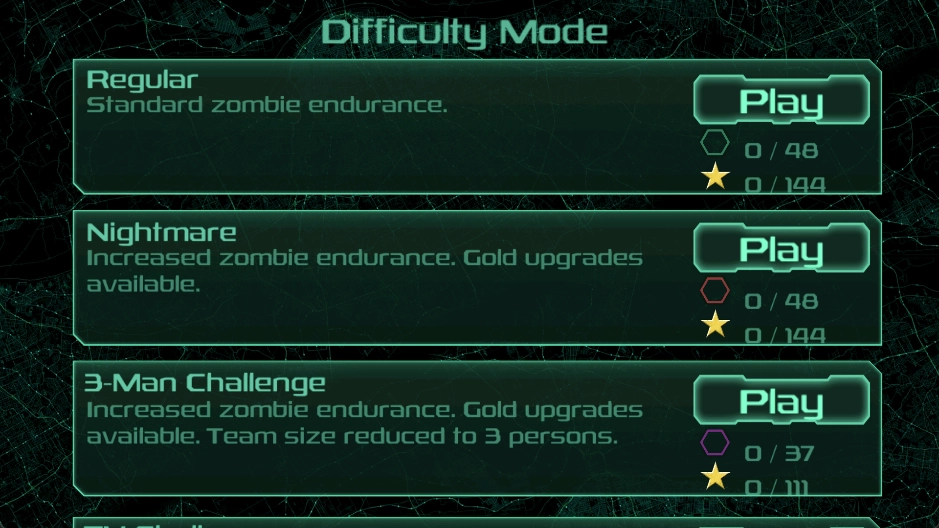1、共设有4种难度模式,分别为普通模式、噩梦模式、3人挑战模式以及挑战电视模式。