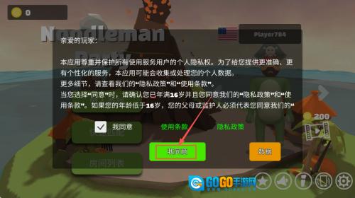 1、同意条款:于游戏开始界面,点击“我同意”按键,即表示同意使用条款。