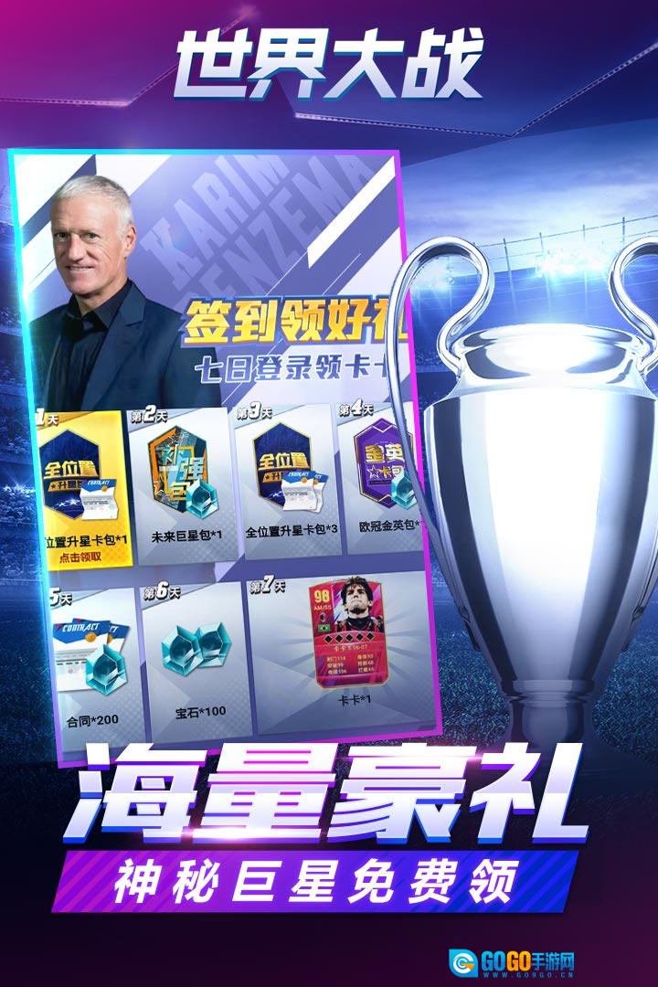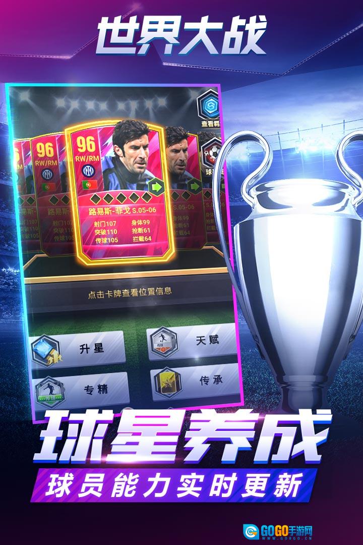 《世界大战》是一款拥有FIFPro官方授权的H5足球卡牌策略游戏。在游戏里,玩家将扮演球队经理的角色,能够收集并培育梅西、C罗、哈兰德等一众传奇球星,构建出属于自己的梦幻阵容。该游戏对真实球员的数据与技能特性进行了高度还原,玩家可通过策略性的布阵以及灵活的战术调整,全方位体验从联赛冠军争夺到世界杯巅峰对决的足球经营乐趣!
