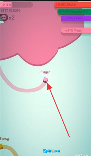 1. 开启游戏后,操纵标着“Player”的方块,顺着地图的空白区域移动,绘制线条,扩大初始领地。