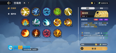 空岛贝是该作品里的特殊道具,当获取空岛贝碎片后,就能制造空岛贝并对其进行升级,从而增强空岛贝的技能效果,提升空岛贝的基础属性。空岛贝技能可应用于战斗场景,在战斗前的阵容界面,玩家能够挑选不同的空岛贝技能。每个空岛贝都有着独特的作用效果,不仅有具备造成伤害或闪避位移效果的,还有拥有功能属性的。