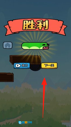 3、顺利到达终点后,点击“下一关”(有箭头指示处),开启新关卡,延续蛇形冒险之旅。