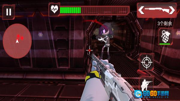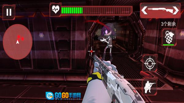 2、在机器人的猛烈袭击中努力存活,借助手中的枪向机器人展开射击,将来袭的机器人逐个消灭,成功抵御住它们的进攻。