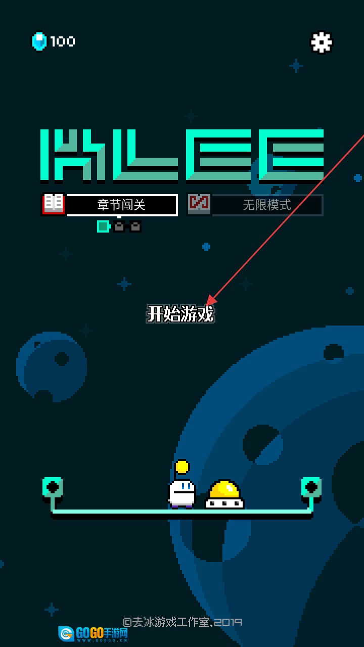 1. 在主界面中,选择“章节闯关”或者“无限模式”,接着点击“开始游戏”,随后操控角色进入太空场景。