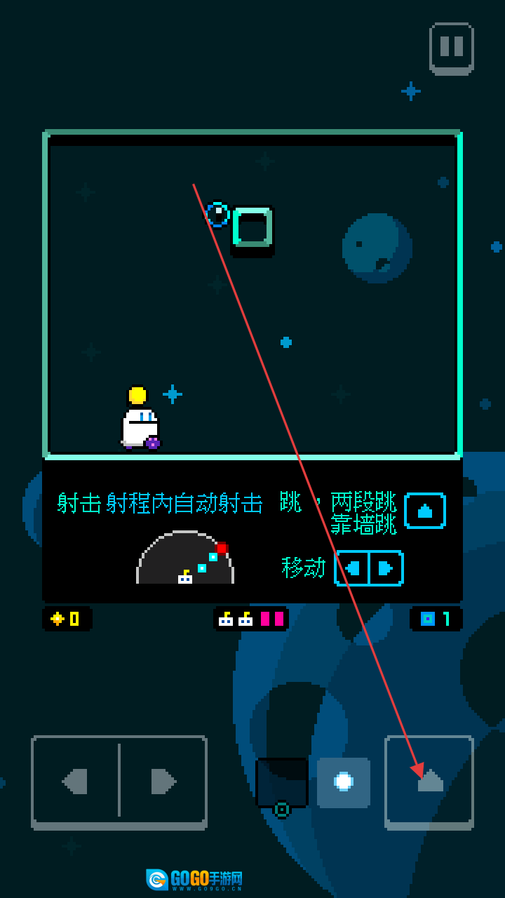 2. 通过虚拟按键操控角色移动,点击跳跃按键(涵盖两段跳、靠墙跳等方式)来越过障碍,当敌人处于射程范围内时,会自动进行射击。