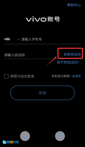 2. 接下来点击“获取验证码”,随后等待接收验证码。
