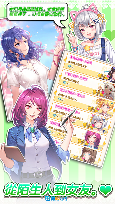 2、邂逅风格各异的美少女,开启甜蜜约会之旅,打造只属于你们二人的独特记忆,同时解锁精美绝伦的CG画面。