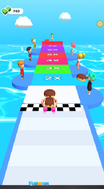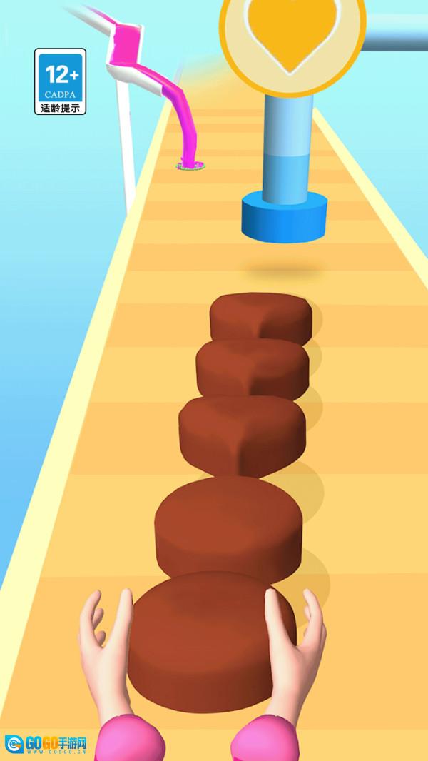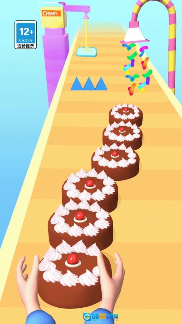 3、玩家操控游戏角色端起多层蛋糕,在赛道上快速奔跑。在这过程中,要持续增加蛋糕的层数,并且时刻留意,巧妙避开赛道上的各类障碍物。