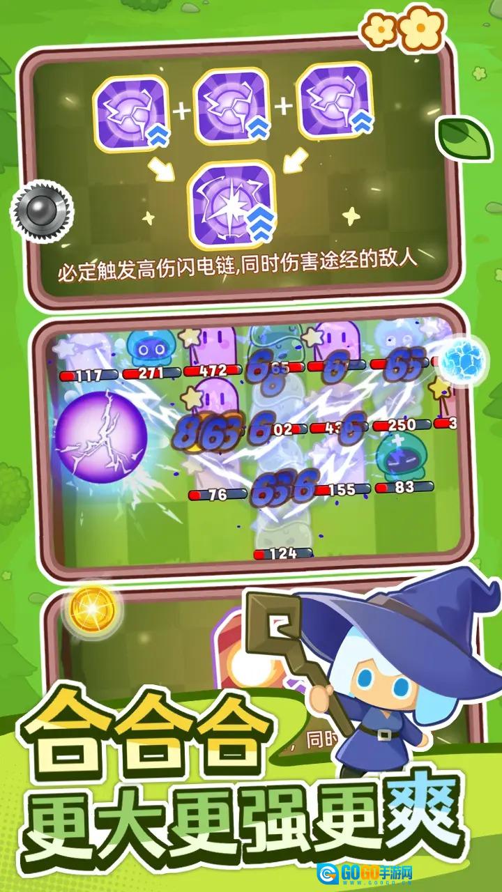2. 创新性地融合了弹射、合成、打砖块以及肉鸽等元素,玩家要借助发射魔法球来战胜怪物,与此同时依靠合成机制对魔法球进行升级。