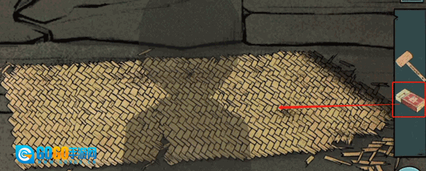 32、走进山洞,往右侧前行,用火柴引燃地上的草席,从而获得【草木灰】。