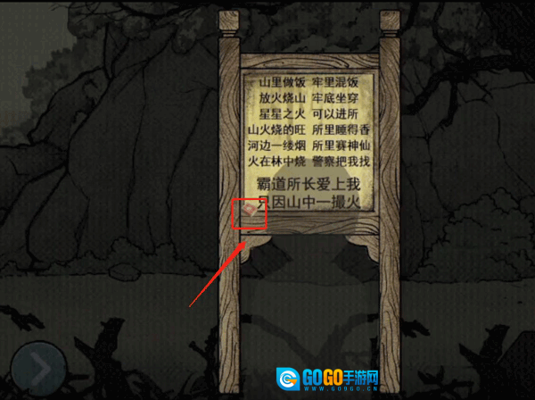 30、接着往右边走,点击写有“严禁烟火”的牌子