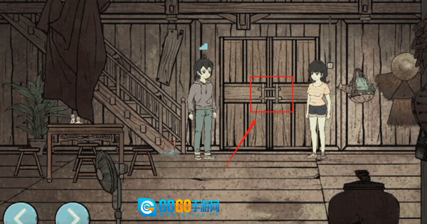 20、再次回到二楼房间门口,点击最右侧墙上的图案。