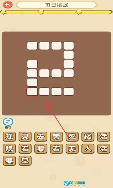3、参与“每日挑战”,按照棋盘轮廓,从下方挑选汉字,依照箭头指示填入空格,完成成语拼图挑战。