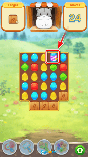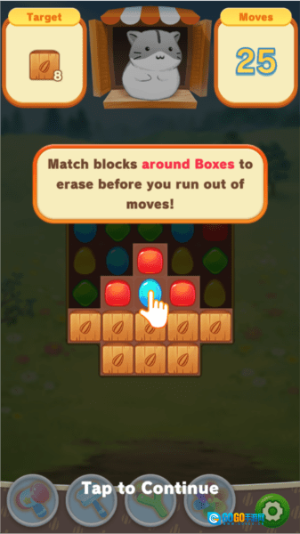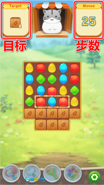 3. 在此处能够查看关卡所需消除的目标,此外,任意颜色的同色方块皆可进行消除。