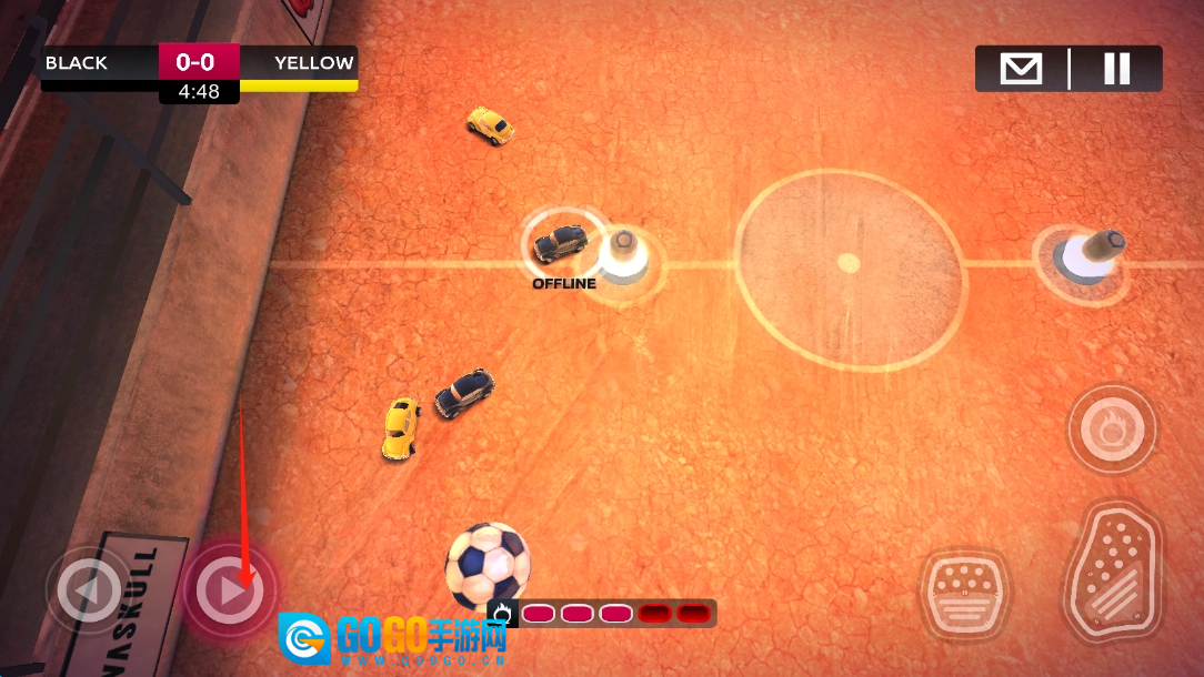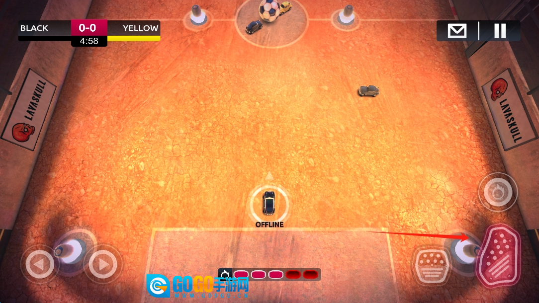 2、进行游戏时,需熟练运用右侧的按钮,精准地操控汽车的方向,在赛场上灵活地走位,努力争夺足球的控制权。