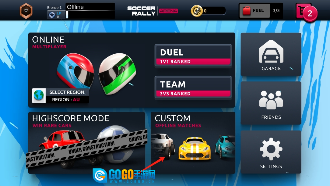 1. 于Soccer - Rally - Arena游戏里,进入模式选择页面,选取合适的游戏模式,开启汽车足球竞赛。