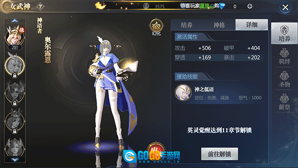 圣物:女武神觉醒后,能够佩戴圣物获取大量属性,并且可以激活圣物套装效果。