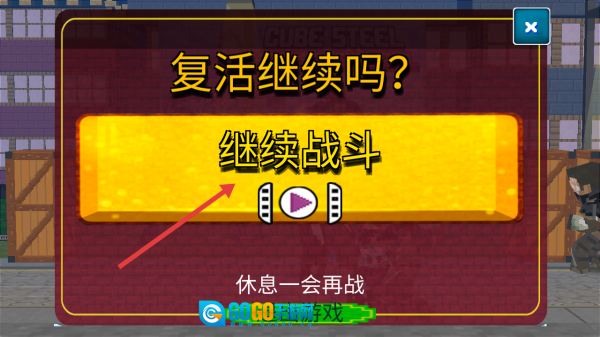 3、角色战败后,会弹出“复活继续吗”的弹窗,此时可选择继续战斗,或者通过看广告来复活,从而延续战局。持续积累胜场,便能解锁新内容并提升战力。