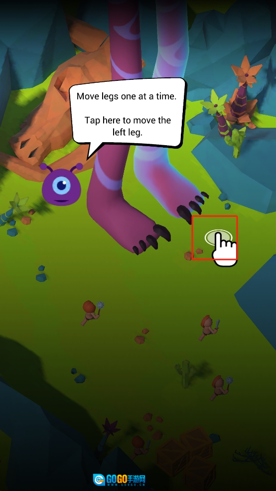 1按照教程的提示,我们点击右侧的绿色圆圈,以此来控制怪物左腿移动,进而开启操控巨型怪物的闯关历程。