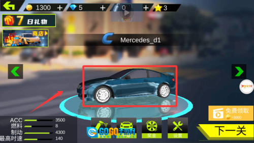 2、依据关卡特性来挑选赛车,不同车辆在加速、极速以及操控性方面存在显著差异。
