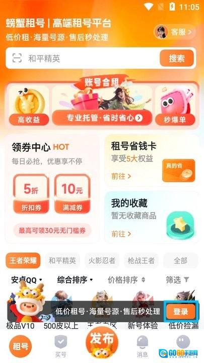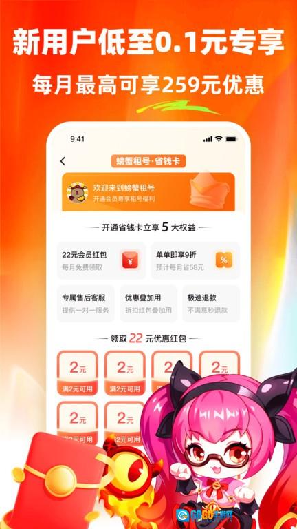 螃蟹租号是一家专业的游戏租号平台,为游戏玩家提供涵盖端游等类型的高级账号。