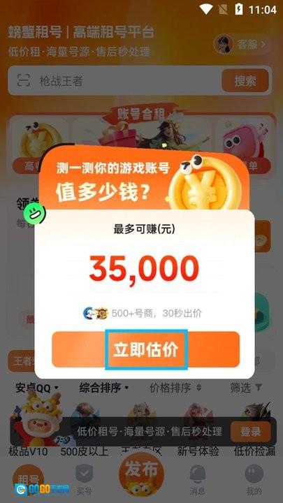 ·轻点【立即评估】,来测测你的游戏账号价值几何。