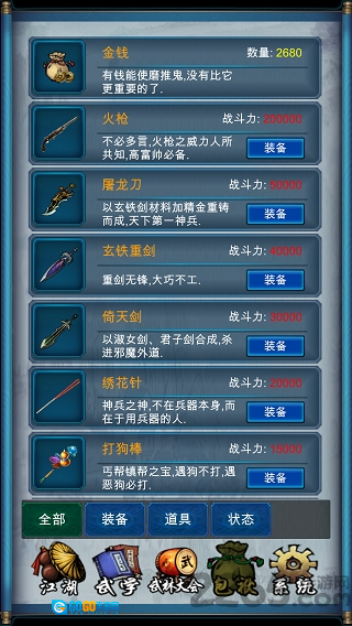 3. 武功修炼:借助学习不同武功、持续修炼以及合理搭配武功招式,增强自身的战斗能力。