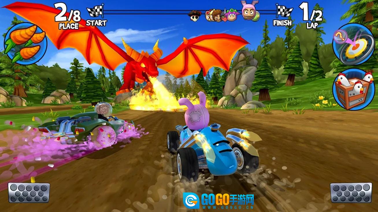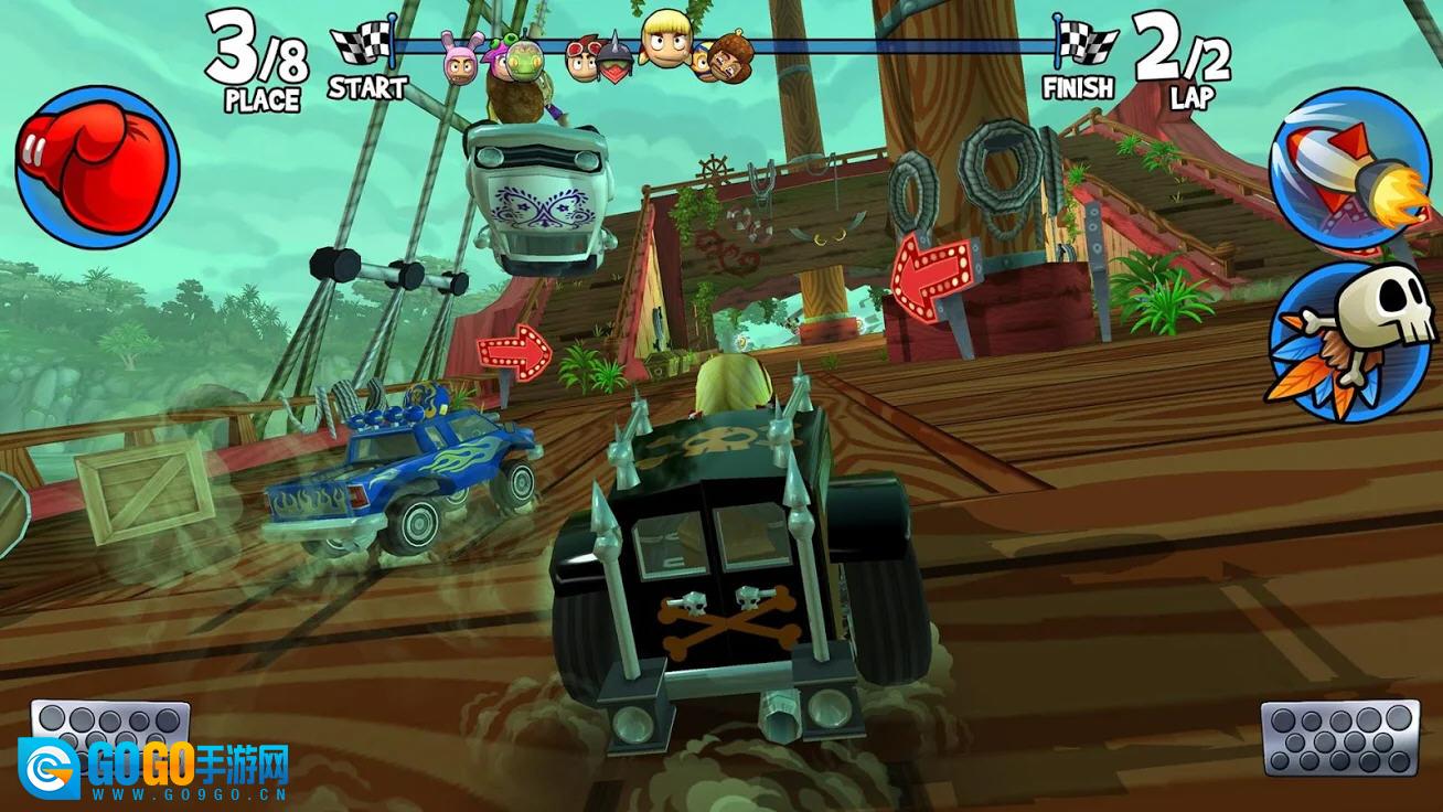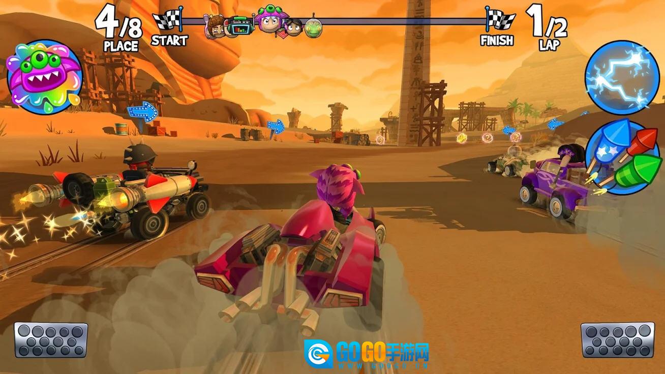 4、尽可能拾取赛道上的道具,这些道具既能为自己驾驶的赛车加速,也能用于狙击其他参赛者。