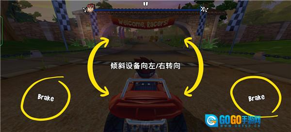 3、如示意图所示,通过使设备左右倾斜来操控赛车的行驶方向。