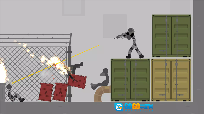 3、简约的火柴人画风与多样丰富的武器相互映衬,形成鲜明反差。这种搭配不仅维持了视觉上的简洁明了,还让枪战场景的激烈感丝毫不减。