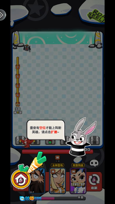 若堡垒已无空位,点击此处进行扩建,扩建后即可上新英雄。