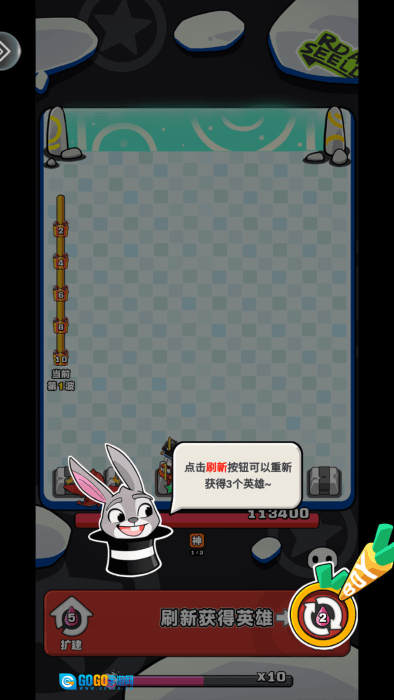 当能量足够时,点击此处刷新,即可重新获取3个英雄。