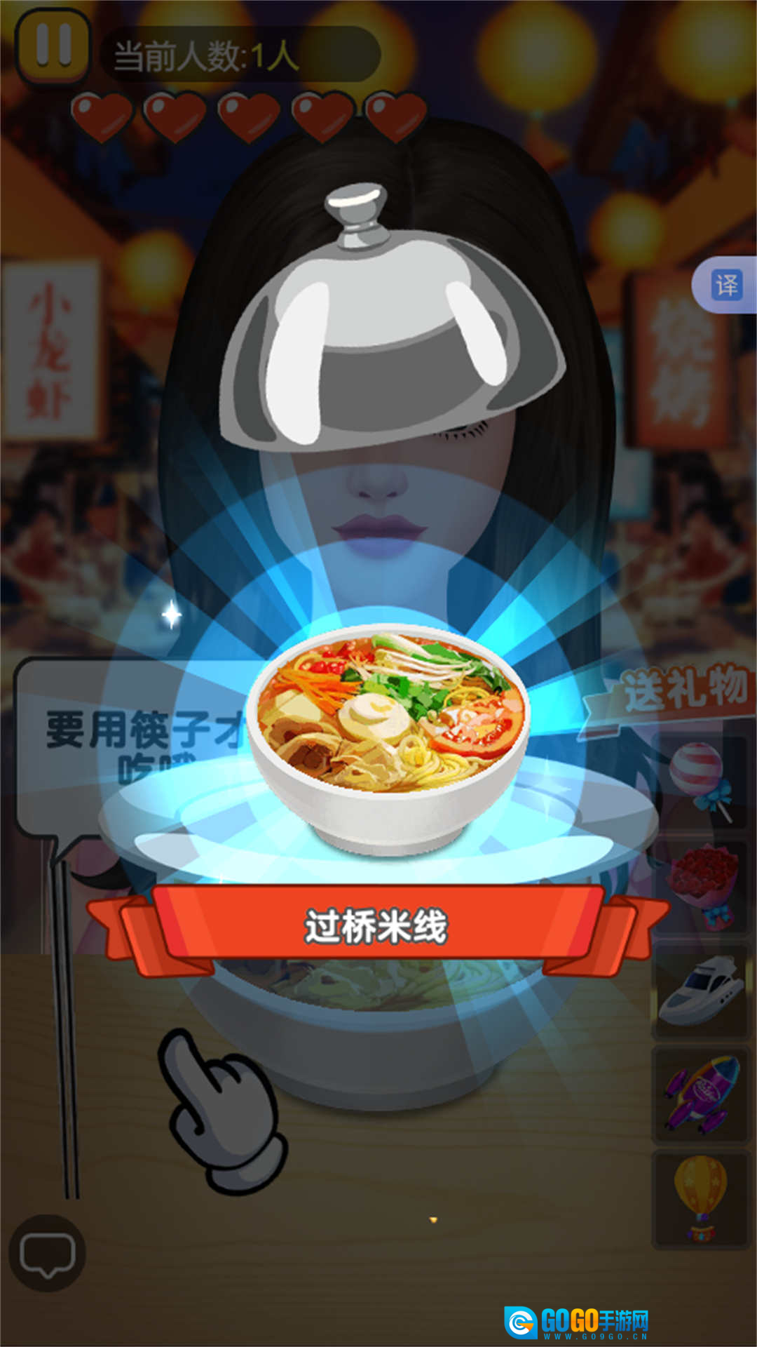 3. 玩家得依据关卡要求,从筷子、叉子、勺子等工具中挑选合适的,迅速完成投喂任务。在此过程中,还要留意主播的饱腹度与心情值。