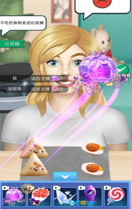 2. 玩家得合理安排投喂次序,防止主播小姐姐出现被噎住或烫到的情况,不然会对通关评分造成影响。