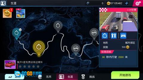 在任务模式里,征服形形色色的任务,以此证明你是无尽拥堵车流中当之无愧的最强车手;于无尽模式中,努力获取最高分,从而登上全球排行榜首位;又或者,仅仅在自由模式下,惬意随心地行驶。无论选择哪种模式,游戏的目标始终如一:收获酷炫丰富的座驾,感受纯粹的驾驶乐趣。