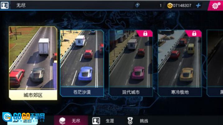 2. 第一步需要了解的是游戏模式,其主要涵盖三大模式:无尽、生涯与挑战。这三种模式各具特色,生涯模式相对常规,达成特定目标就行,挑战模式亦是如此,完成后能获取大量金币。而无尽模式较为独特,地图丰富,玩法模式也更为多样。