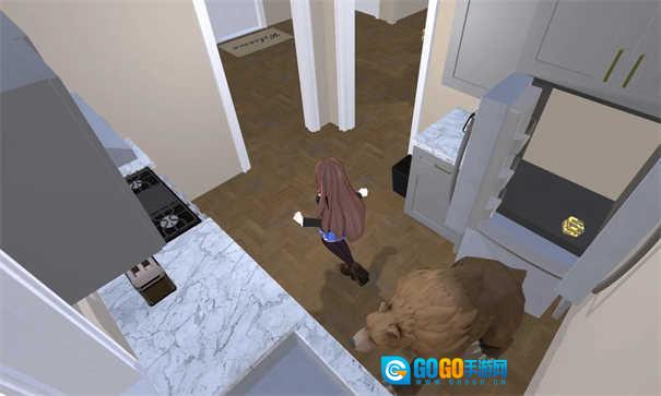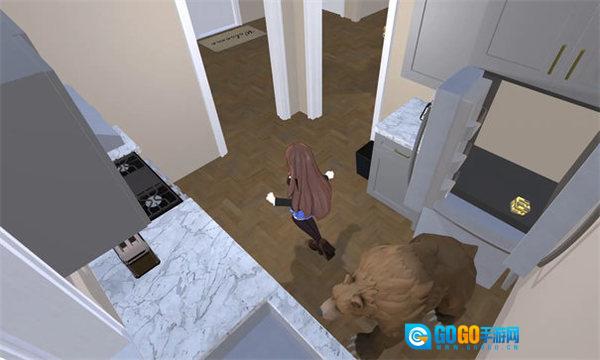 5、接着走到后方厨房,打开冰箱,冰箱里会出现一只熊,冰箱门打开后得朝着反方向跑以躲避。
