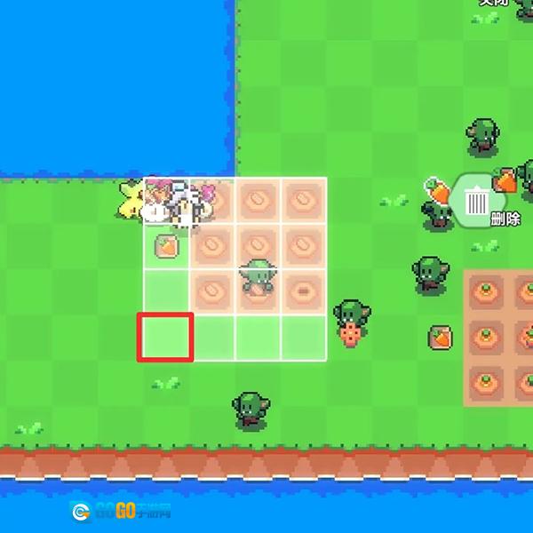7、首先放置农作物,只需让红色方框处于前文提到的能够放置洒水器的区域就行(不一定要和图上位置完全一致)