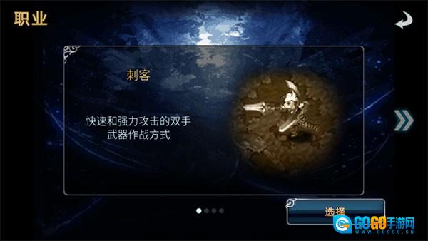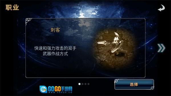 3、接着挑选一个职业,游戏中提供了四大强力职业,玩家可自由选择,分别是刺客、骑士、狂战士以及魔法师。